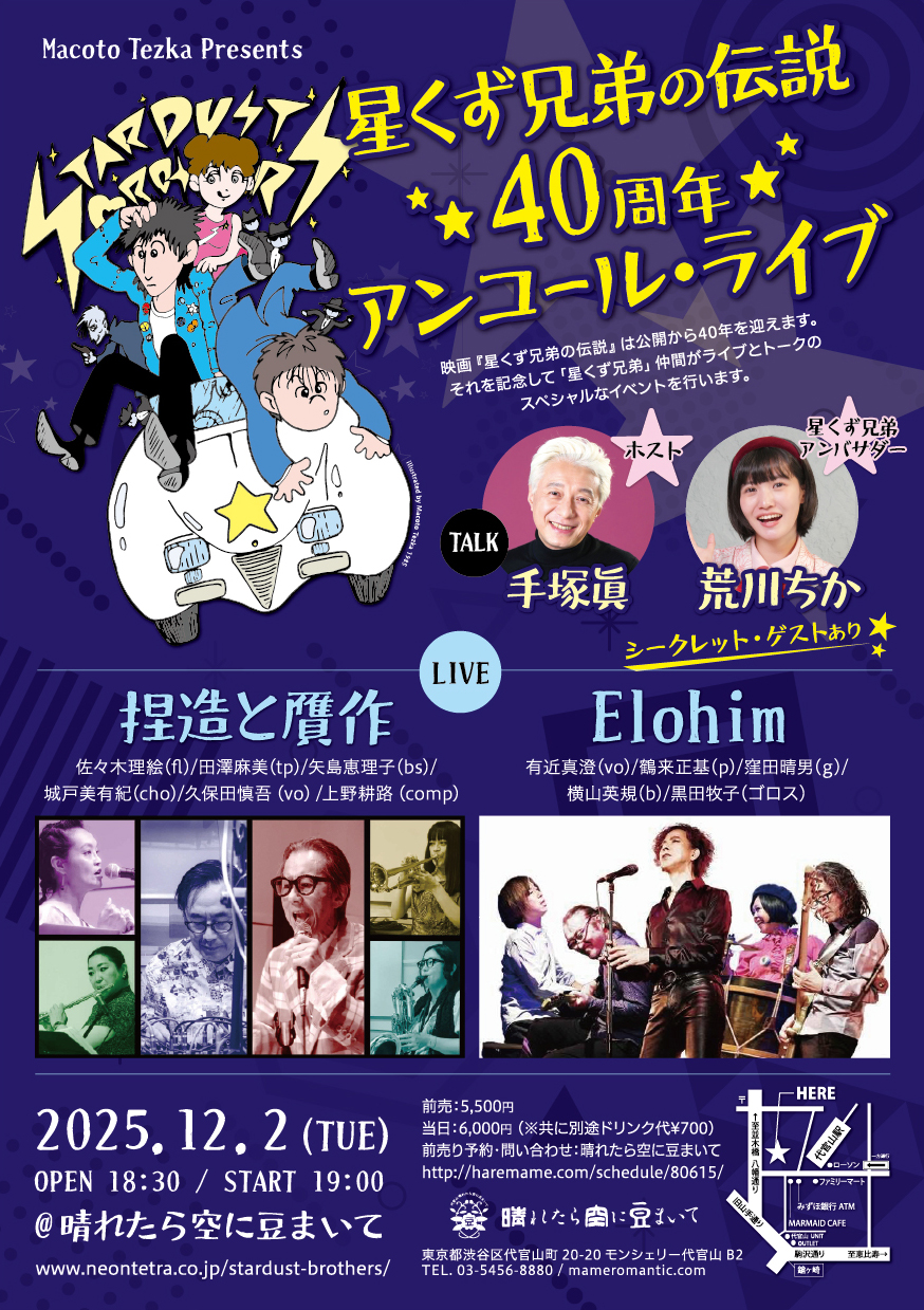 『星くず兄弟の伝説 40周年アンコール・ライブ』が開催されます。